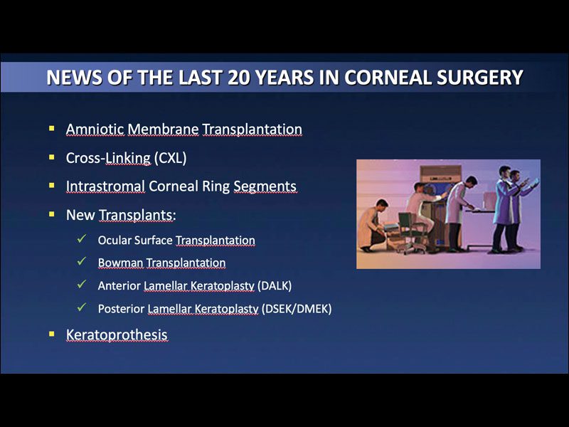 La oftalmología ha experimentado una fascinante evolución en las últimas décadas. En particular, la cirugía de córnea, que ha sido objeto de constantes investigaciones y desarrollos, gracias a la pasión y dedicación de profesionales, cuya experiencia y liderazgo han impulsado el campo hacia el futuro.