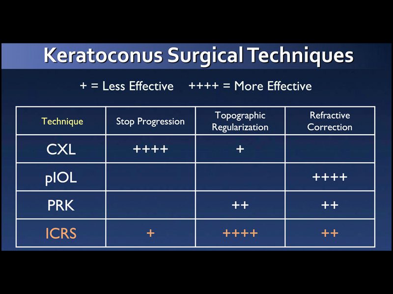 Otro avance que transformó la práctica de la cirugía de la córnea fue el desarrollo del crosslinking corneal. Inicialmente, fue objeto de críticas y escepticismo, pero la técnica ganó aceptación debido a su eficacia como tratamiento para evitar la progresión del queratocono y otras enfermedades corneales. La aplicación del protocolo de Dresden, en humanos, marcó un punto de inflexión en la historia del crosslinking, y su reconocimiento, en el año 2011, como una herramienta valiosa para prevenir las queratoplastias en niños y el tratamiento del queratocono consolidó su lugar en la práctica clínica.