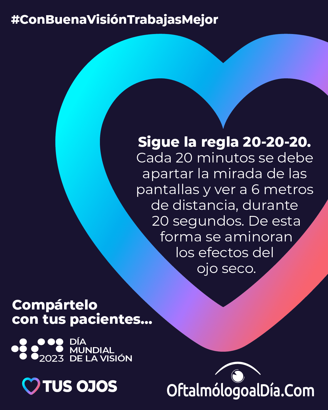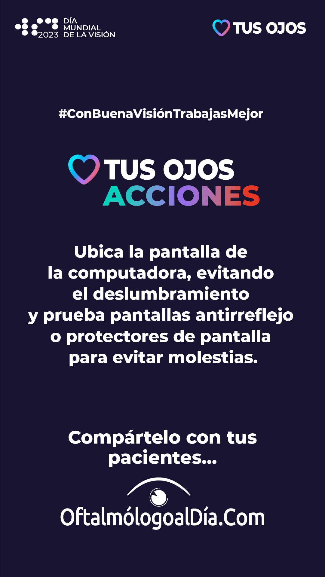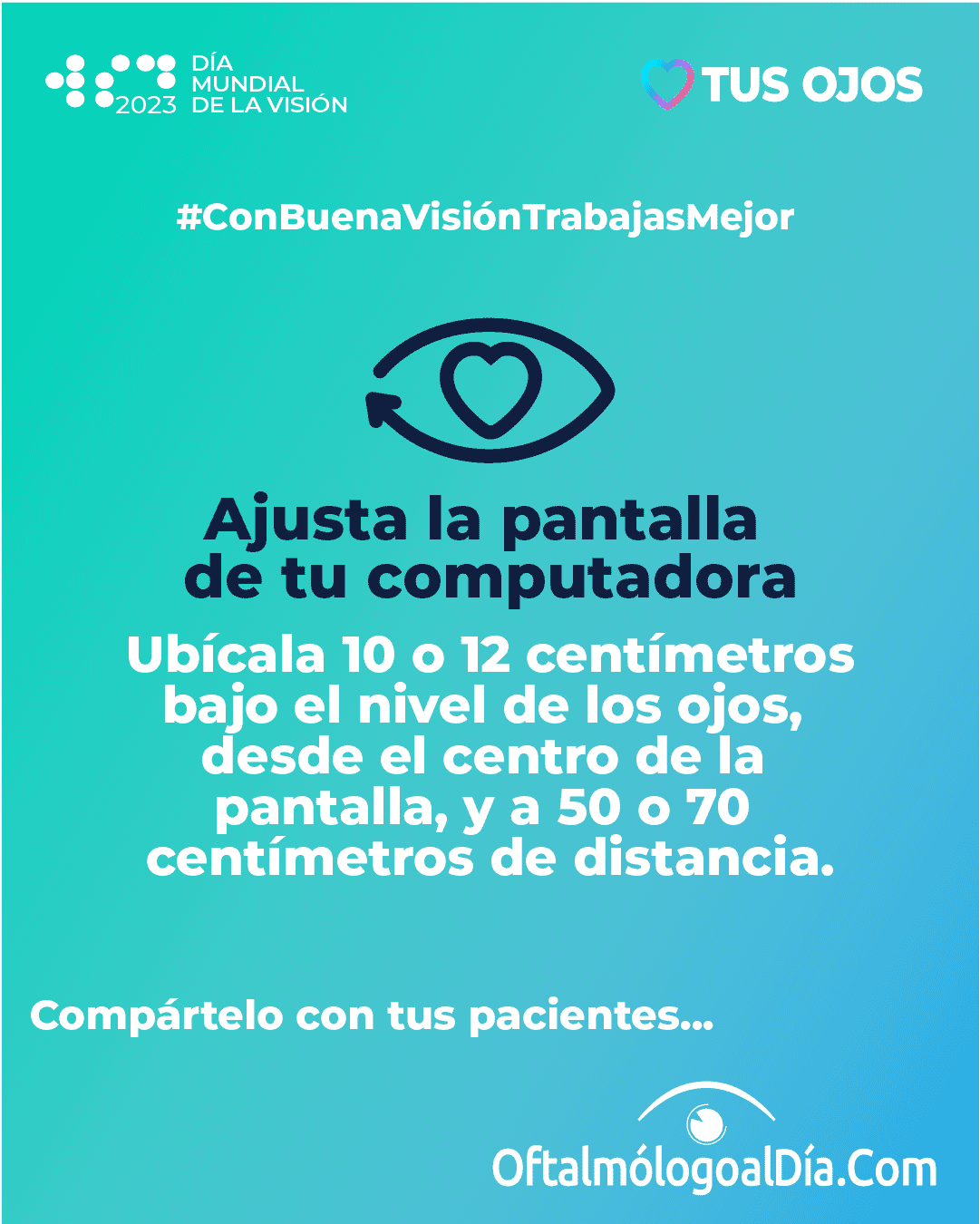 La revista Review of Ophthalmology y Oftalmólogo al día se unen al Día Mundial de la Visión con la divulgación de la campaña #ConBuenaVisiónTrabajasMejor y ponemos a disposición esta información para que la compartan con sus pacientes.