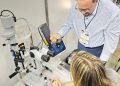Dentro de la exhibición hubo una sala dedicada a los láseres de retina, para que los especialistas de la salud visual tuvieran la oportunidad de probar fotocoaguladores de cinco empresas diferentes, entre las que destacó Norlase, que contó con dos estaciones de trabajo totalmente funcionales, una con el LEAF (en una lámpara de hendidura) y otra con un LION (integrado en el LIO).