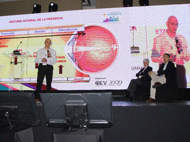El Dr. Tito Gómez, M.D., abordó temas cruciales en la identificación y tratamiento de la presbicia y destacó los factores implicados en su desarrollo, así mismo enfatizó la importancia de entender el perfil epidemiológico para una mejor intervención clínica y la predicción de la evolución de la enfermedad.